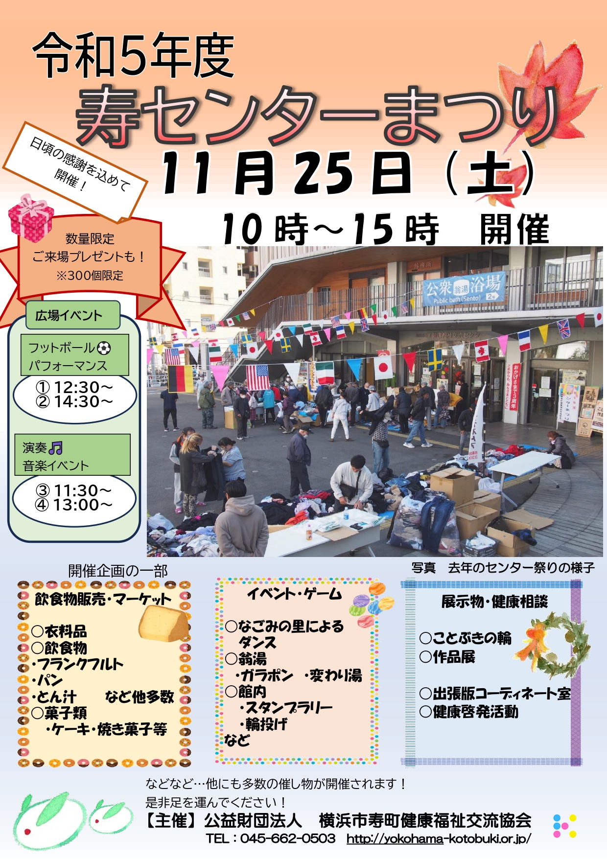 | 11月25日(土) | 10:00~15:00 | 寿センターまつり(詳細PDF) | ||