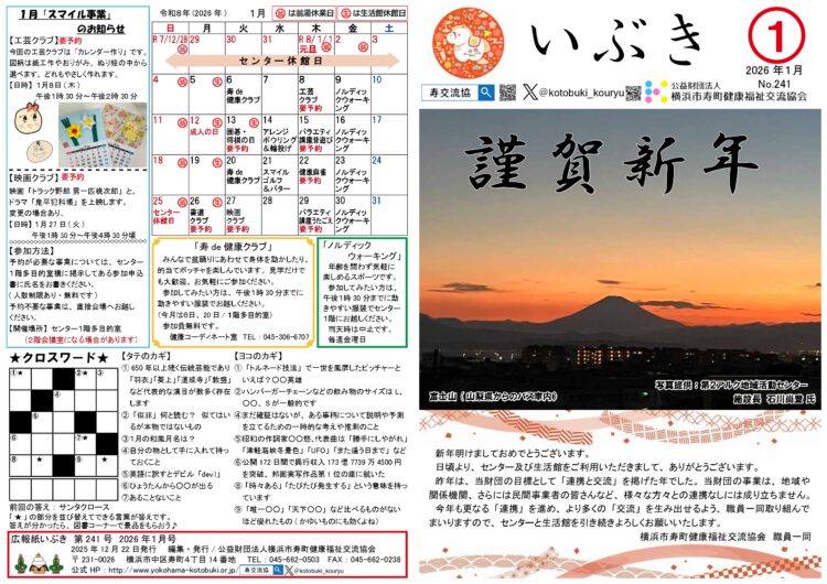 2025年12月26日 / 最終更新日 : 2025年12月26日 (公財) 横浜市寿町健康福祉交流協会 広報紙「いぶき」 広報いぶき2026年1月号(№241) いぶき令和8年1月号PDF FacebookXHatenaPocketCopy